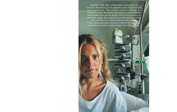 Ontem, domingo, a jovem escreveu nas redes sociais: “Amanhã é o dia. Mas a preparação começa hoje. Ao contrário dos atletas que se equipam, já me despi de tudo o que trouxe da rua.Ténis, brincos, pulseiras e aliança, foi tudo para o saco de plástico. Mas mesmo com um pijama emprestado, sinto-me tão quente com a força de todos os que trago comigo. Que todas as horas difíceis sejam noites para adormecer ao colo de uma gratidão gigante. É isso: mesmo despida, sinto-me a transbordar de coisas. Amanhã eu sei: não vou para aquele bloco frio sozinha.”