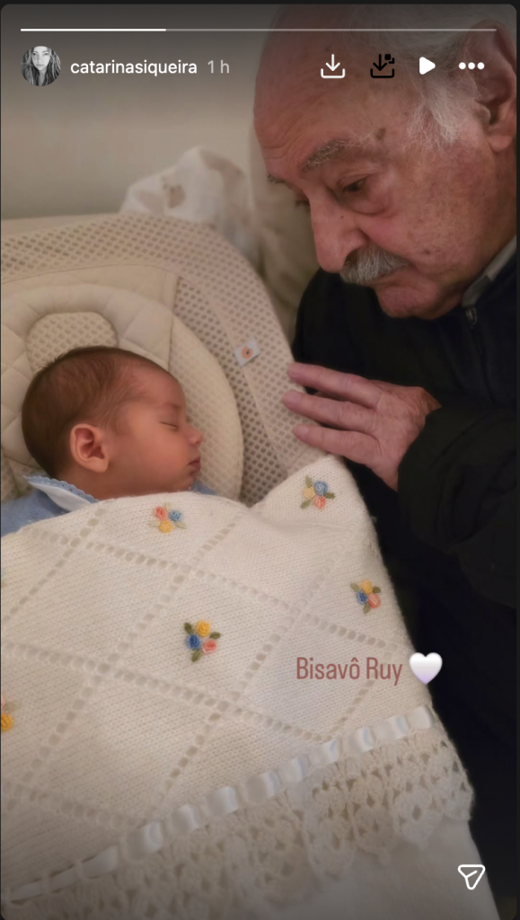 A viverem nesta ‘bolha de amor’ desde então, Catarina Siqueira e Henrique de Carvalho viveram um momento enternecedor- quando o bisavô Ruy de Carvalho conhece o recém-nascido- e decidiram gravá-lo.