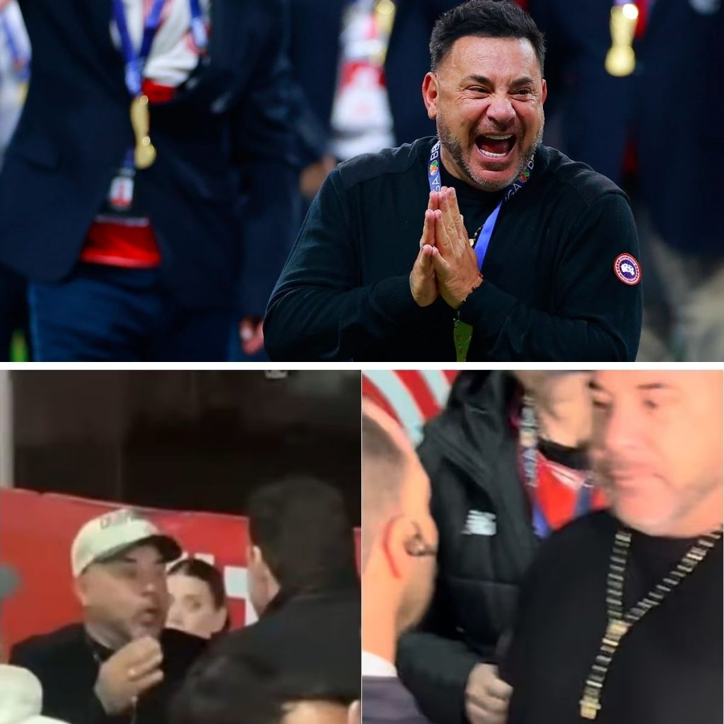 En imágenes compartidas en redes sociales, se puede ver al estratega argentino encarar al comunicador de Televisa, reclamar y hacer algunas señales con las manos, mismas que se hicieron virales.