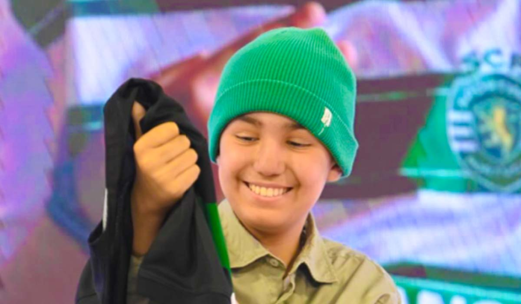 Na altura, o apresentador não escondeu a emoção ao entregar o presente ao pequeno fã do Sporting: “Assim que souberam da tua história, assinaram todos a camisola para ti”, disse Cláudio Ramos.